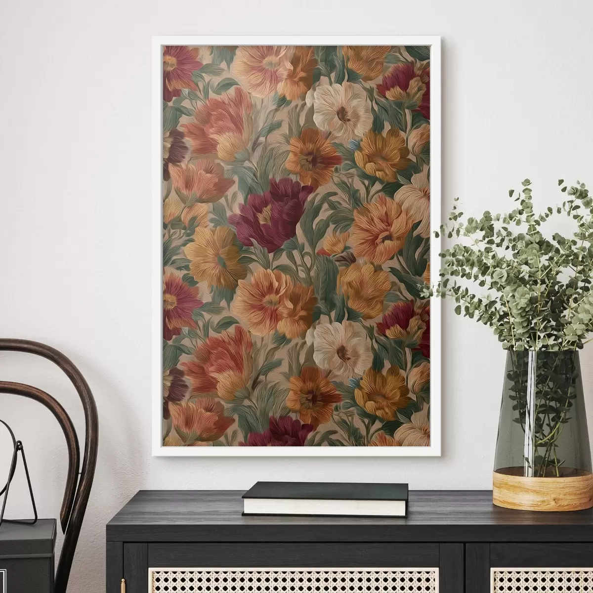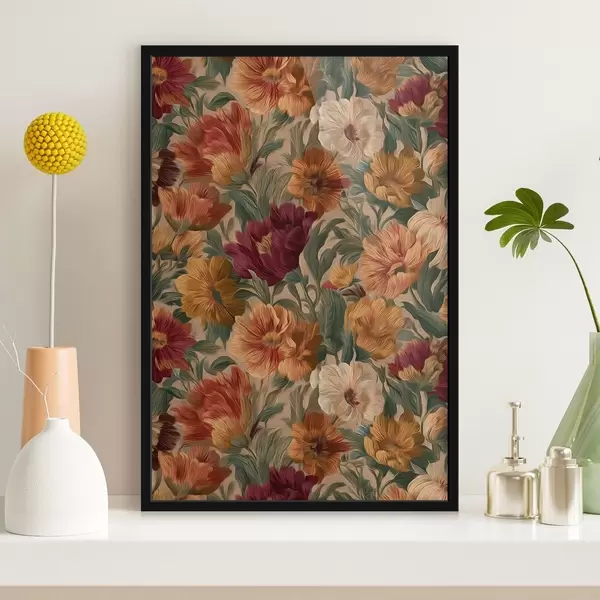 Poster Vintage květinový vzor v teplých barvách Č. f45896