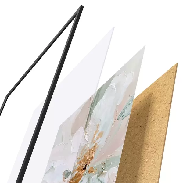 Plakát se skládá z rámu, plexiskla, tištěného obrazu a dřevotřískového podkladu. Díky úchytům na zadní straně lze plakát ihned zavěsit na zeď.