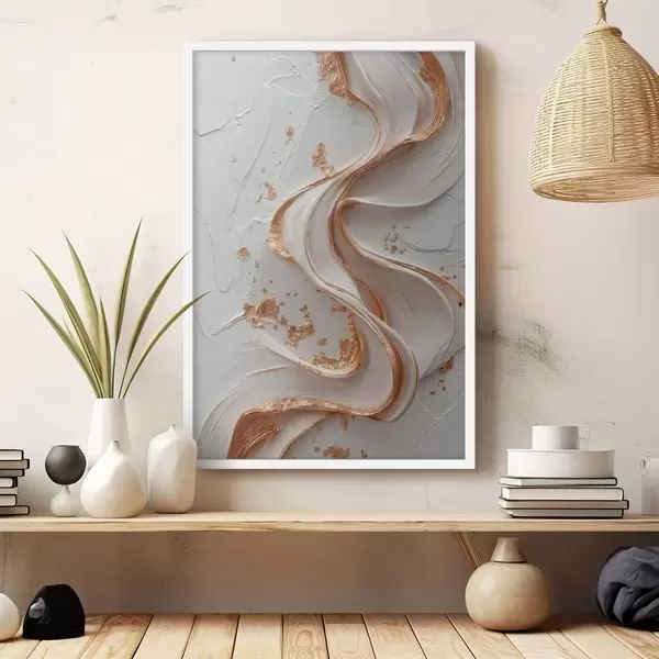 Poster Bílo-žluté texturované tahy s kovovými akcenty f45906