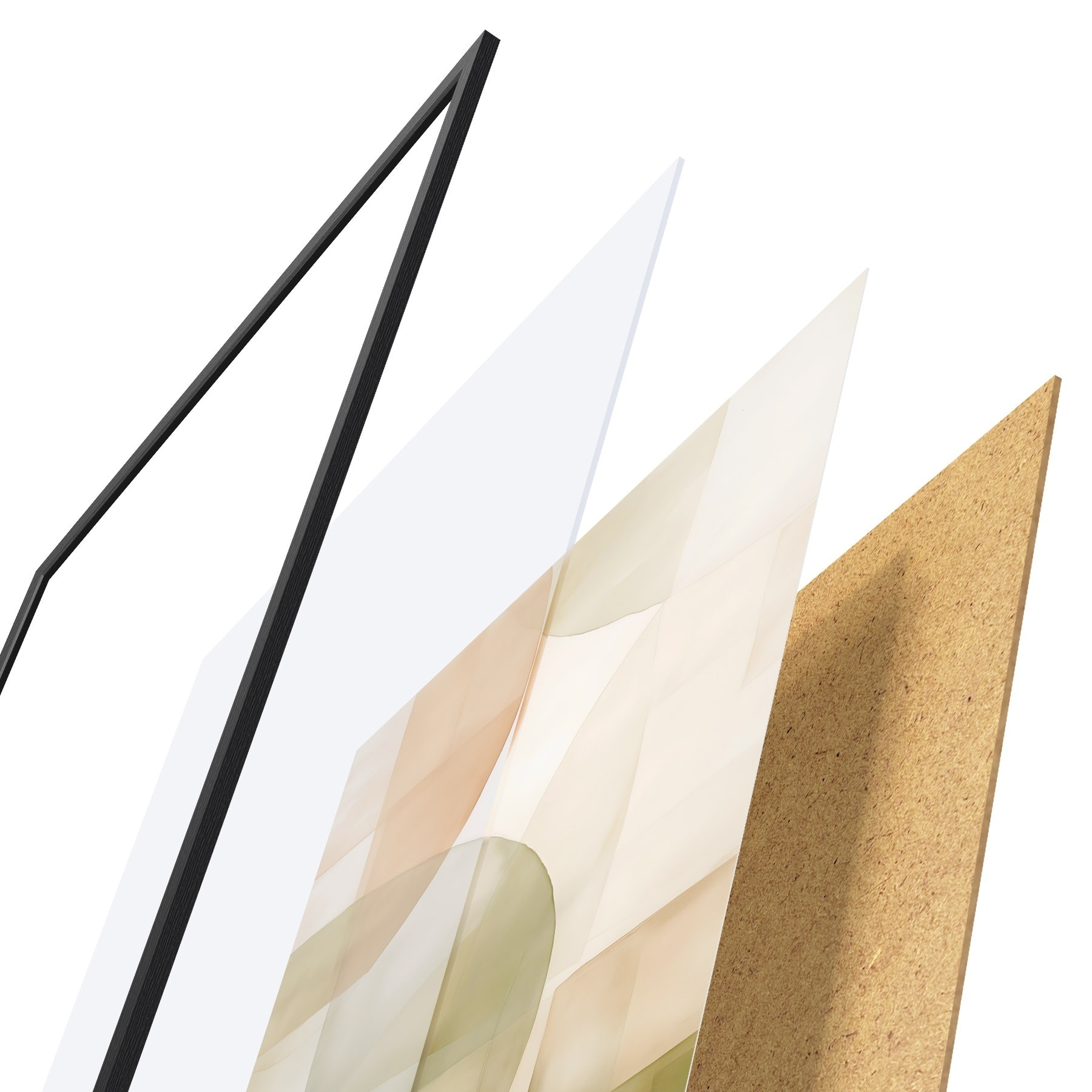 Plakát se skládá z rámu, plexiskla, tištěného obrazu a dřevotřískového podkladu. Díky úchytům na zadní straně lze plakát ihned zavěsit na zeď.