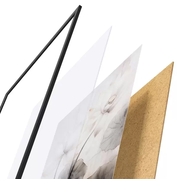 Plakát se skládá z rámu, plexiskla, tištěného obrazu a dřevotřískového podkladu. Díky úchytům na zadní straně lze plakát ihned zavěsit na zeď.