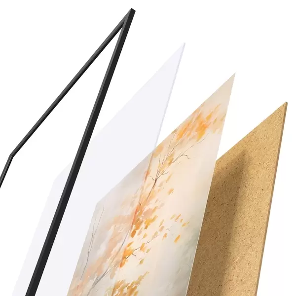 Plakát se skládá z rámu, plexiskla, tištěného obrazu a dřevotřískového podkladu. Díky úchytům na zadní straně lze plakát ihned zavěsit na zeď.