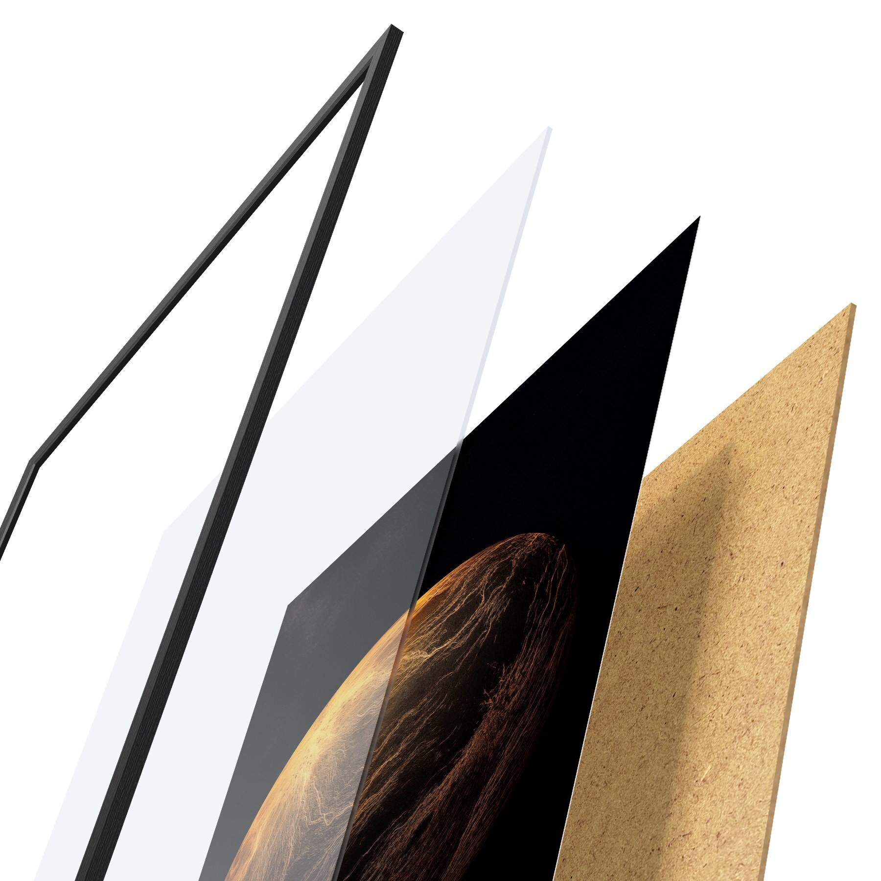 Plakát se skládá z rámu, plexiskla, tištěného obrazu a dřevotřískového podkladu. Díky úchytům na zadní straně lze plakát ihned zavěsit na zeď.