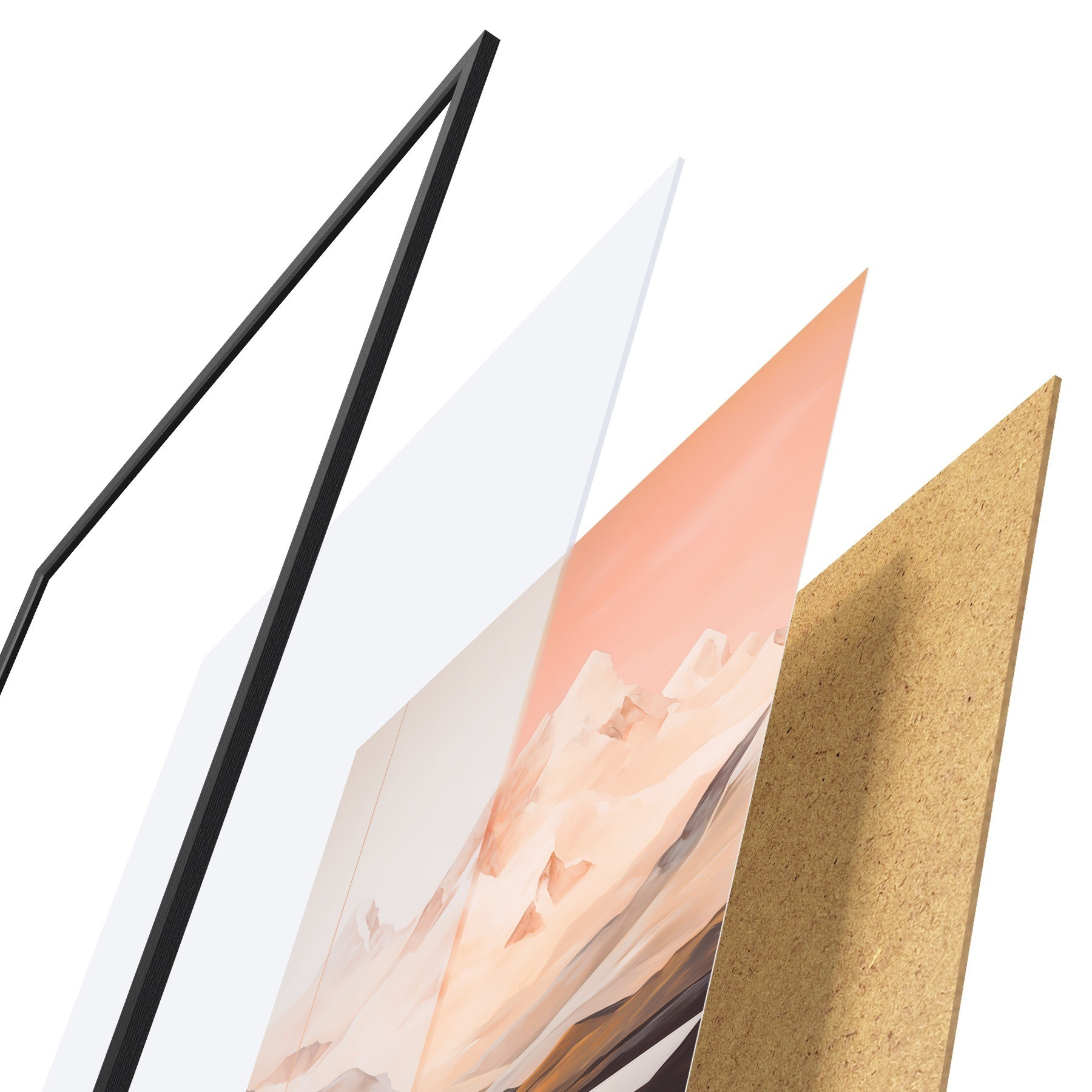 Plakát se skládá z rámu, plexiskla, tištěného obrazu a dřevotřískového podkladu. Díky úchytům na zadní straně lze plakát ihned zavěsit na zeď.
