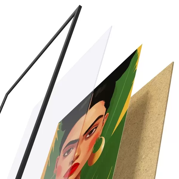 Plakát se skládá z rámu, plexiskla, tištěného obrazu a dřevotřískového podkladu. Díky úchytům na zadní straně lze plakát ihned zavěsit na zeď.