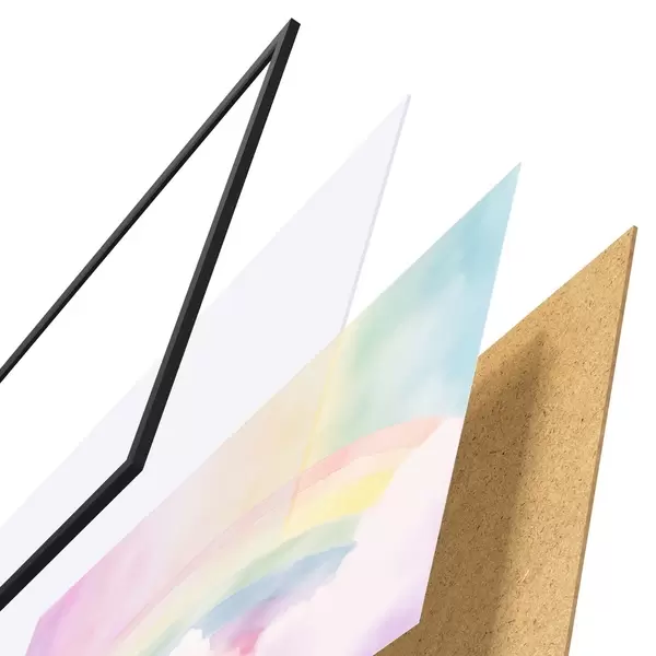 Plakát se skládá z rámu, plexiskla, tištěného obrazu a dřevotřískového podkladu. Díky úchytům na zadní straně lze plakát ihned zavěsit na zeď.