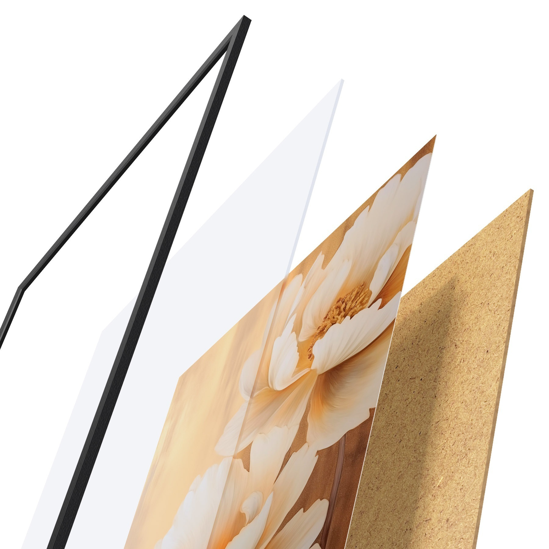 Plakát se skládá z rámu, plexiskla, tištěného obrazu a dřevotřískového podkladu. Díky úchytům na zadní straně lze plakát ihned zavěsit na zeď.