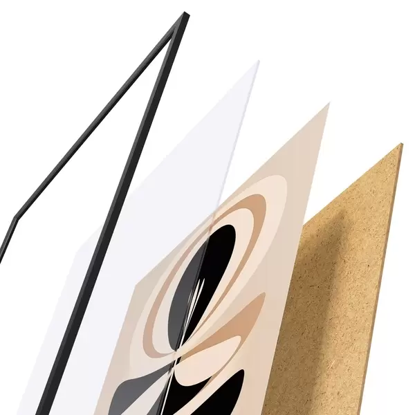 Plakát se skládá z rámu, plexiskla, tištěného obrazu a dřevotřískového podkladu. Díky úchytům na zadní straně lze plakát ihned zavěsit na zeď.