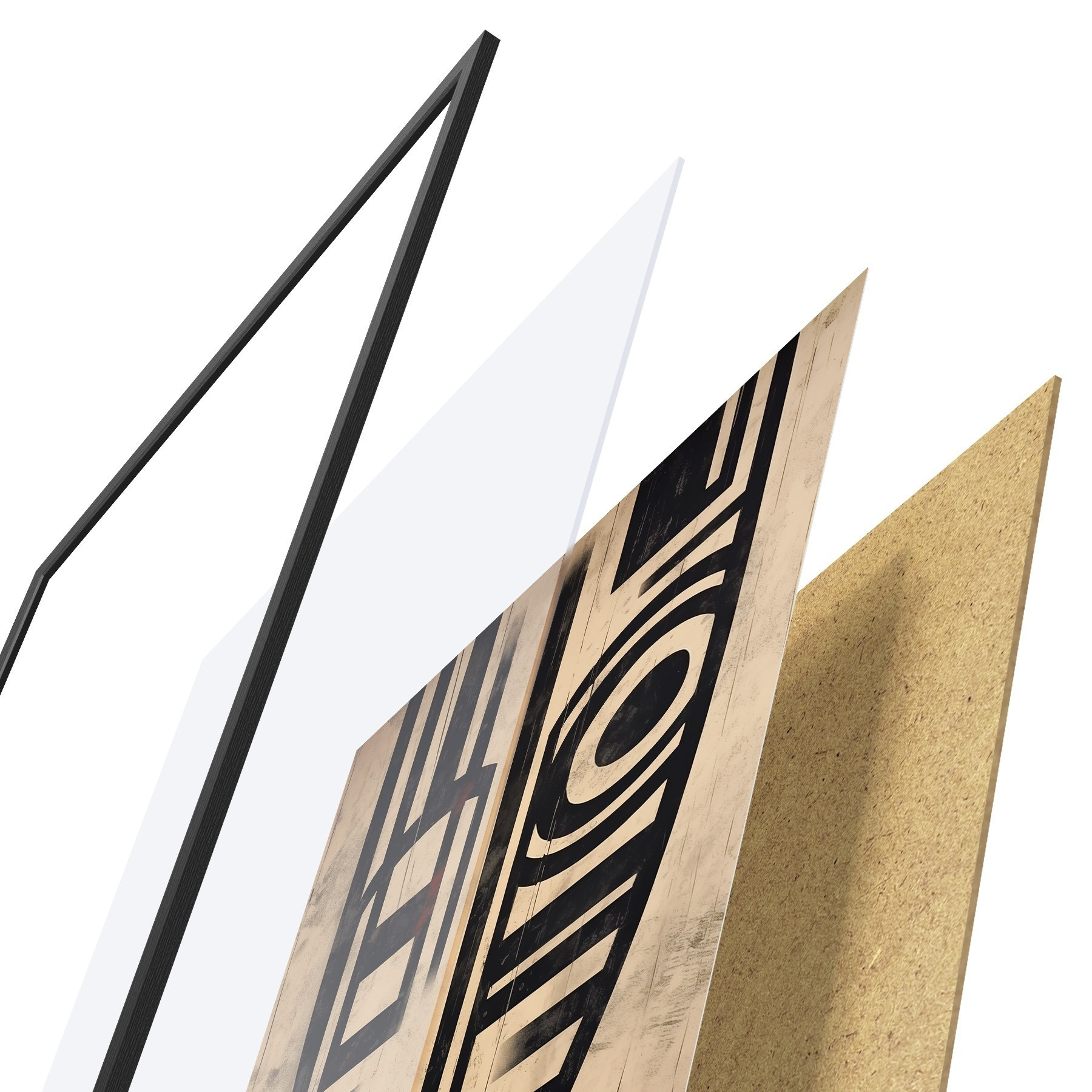 Plakát se skládá z rámu, plexiskla, tištěného obrazu a dřevotřískového podkladu. Díky úchytům na zadní straně lze plakát ihned zavěsit na zeď.