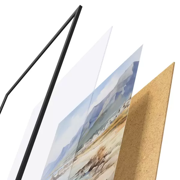 Plakát se skládá z rámu, plexiskla, tištěného obrazu a dřevotřískového podkladu. Díky úchytům na zadní straně lze plakát ihned zavěsit na zeď.