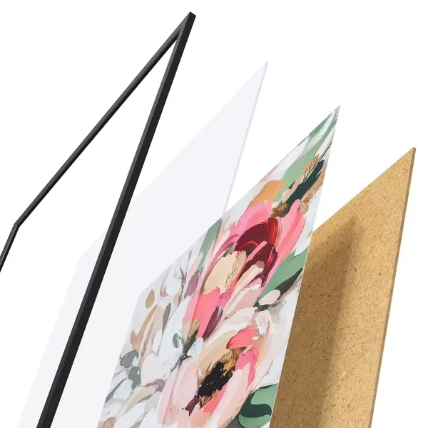 Plakát se skládá z rámu, plexiskla, tištěného obrazu a dřevotřískového podkladu. Díky úchytům na zadní straně lze plakát ihned zavěsit na zeď.