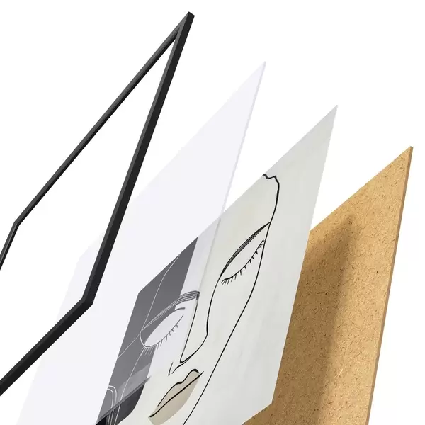 Plakát se skládá z rámu, plexiskla, tištěného obrazu a dřevotřískového podkladu. Díky úchytům na zadní straně lze plakát ihned zavěsit na zeď.