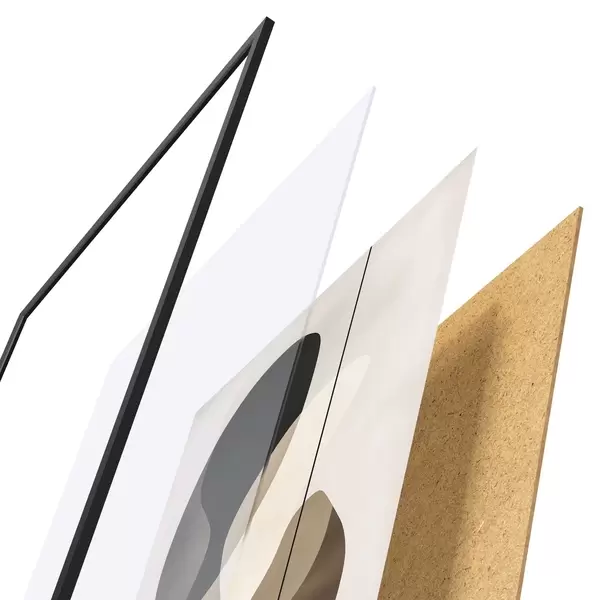 Plakát se skládá z rámu, plexiskla, tištěného obrazu a dřevotřískového podkladu. Díky úchytům na zadní straně lze plakát ihned zavěsit na zeď.