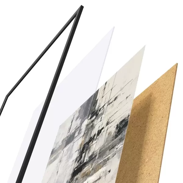 Plakát se skládá z rámu, plexiskla, tištěného obrazu a dřevotřískového podkladu. Díky úchytům na zadní straně lze plakát ihned zavěsit na zeď.