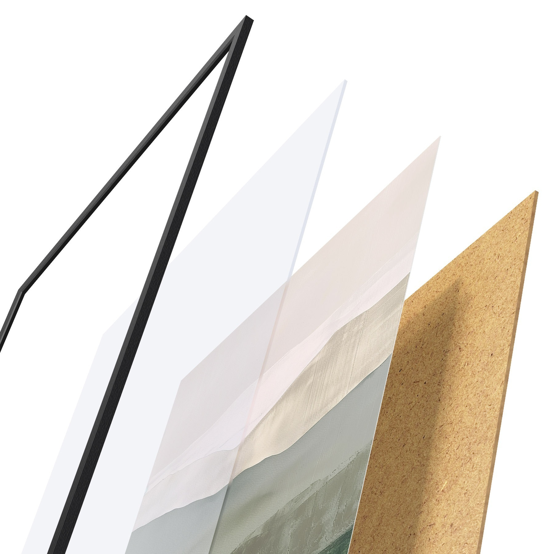 Plakát se skládá z rámu, plexiskla, tištěného obrazu a dřevotřískového podkladu. Díky úchytům na zadní straně lze plakát ihned zavěsit na zeď.