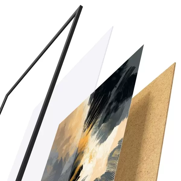 Plakát se skládá z rámu, plexiskla, tištěného obrazu a dřevotřískového podkladu. Díky úchytům na zadní straně lze plakát ihned zavěsit na zeď.