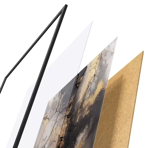 Plakát se skládá z rámu, plexiskla, tištěného obrazu a dřevotřískového podkladu. Díky úchytům na zadní straně lze plakát ihned zavěsit na zeď.