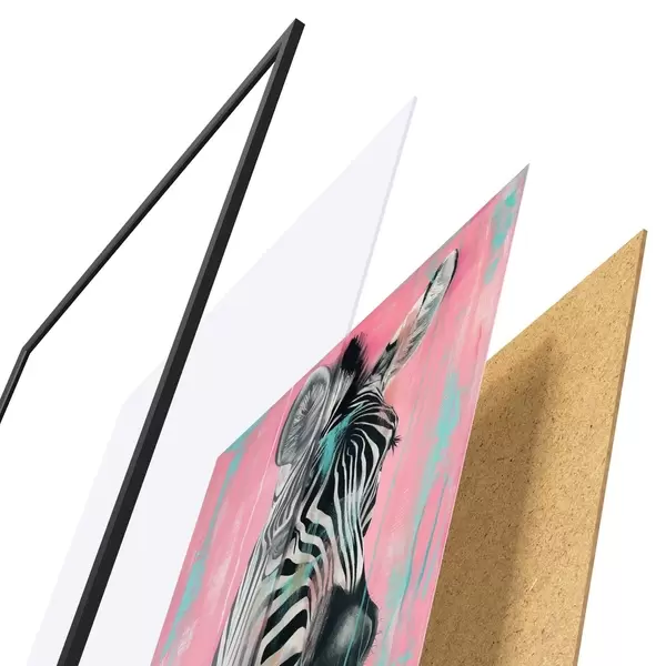 Plakát se skládá z rámu, plexiskla, tištěného obrazu a dřevotřískového podkladu. Díky úchytům na zadní straně lze plakát ihned zavěsit na zeď.