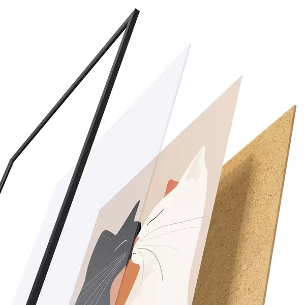 Plakát se skládá z rámu, plexiskla, tištěného obrazu a dřevotřískového podkladu. Díky úchytům na zadní straně lze plakát ihned zavěsit na zeď.