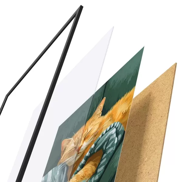 Plakát se skládá z rámu, plexiskla, tištěného obrazu a dřevotřískového podkladu. Díky úchytům na zadní straně lze plakát ihned zavěsit na zeď.