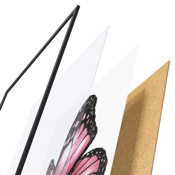 Plakát se skládá z rámu, plexiskla, tištěného obrazu a dřevotřískového podkladu. Díky úchytům na zadní straně lze plakát ihned zavěsit na zeď.