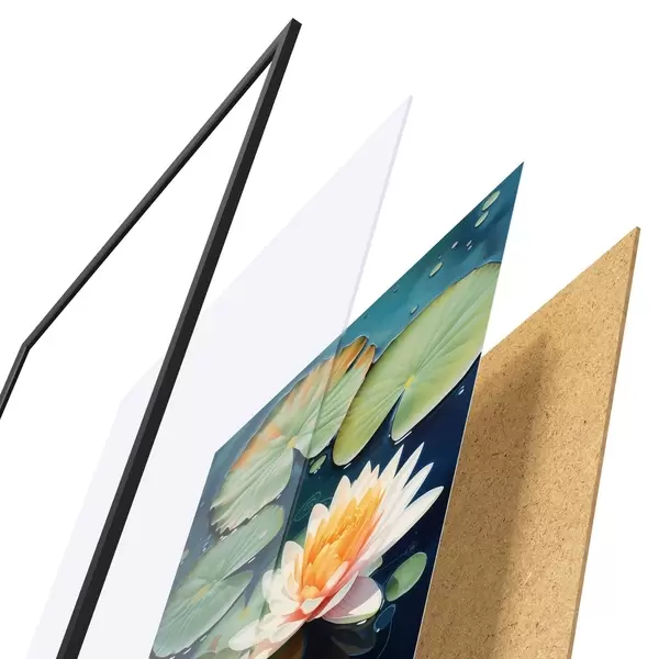 Plakát se skládá z rámu, plexiskla, tištěného obrazu a dřevotřískového podkladu. Díky úchytům na zadní straně lze plakát ihned zavěsit na zeď.