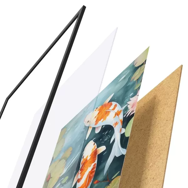 Plakát se skládá z rámu, plexiskla, tištěného obrazu a dřevotřískového podkladu. Díky úchytům na zadní straně lze plakát ihned zavěsit na zeď.