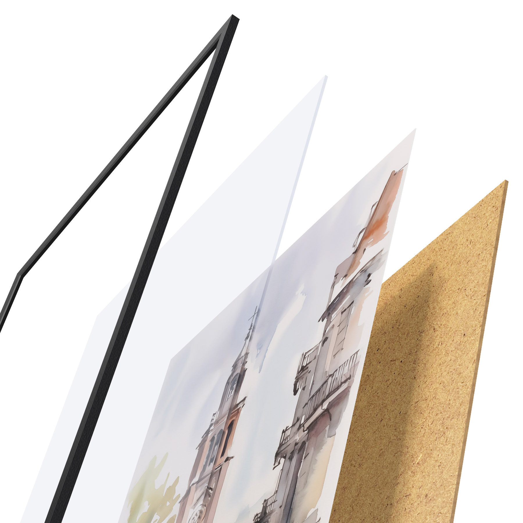 Plakát se skládá z rámu, plexiskla, tištěného obrazu a dřevotřískového podkladu. Díky úchytům na zadní straně lze plakát ihned zavěsit na zeď.