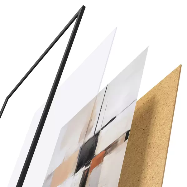 Plakát se skládá z rámu, plexiskla, tištěného obrazu a dřevotřískového podkladu. Díky úchytům na zadní straně lze plakát ihned zavěsit na zeď.