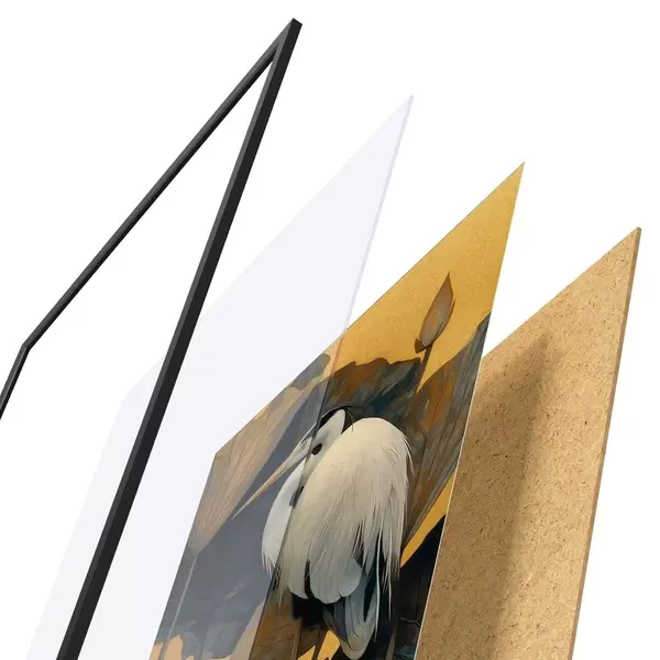 Plakát se skládá z rámu, plexiskla, tištěného obrazu a dřevotřískového podkladu. Díky úchytům na zadní straně lze plakát ihned zavěsit na zeď.