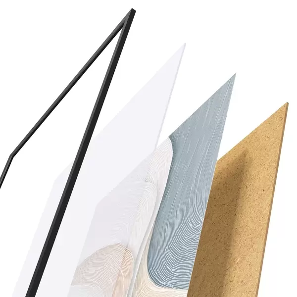 Plakát se skládá z rámu, plexiskla, tištěného obrazu a dřevotřískového podkladu. Díky úchytům na zadní straně lze plakát ihned zavěsit na zeď.