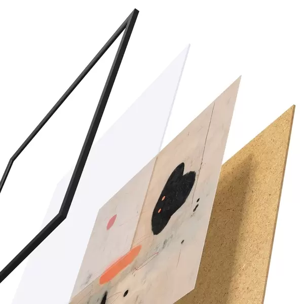 Plakát se skládá z rámu, plexiskla, tištěného obrazu a dřevotřískového podkladu. Díky úchytům na zadní straně lze plakát ihned zavěsit na zeď.