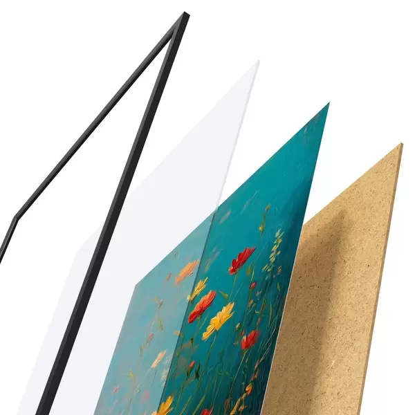 Plakát se skládá z rámu, plexiskla, tištěného obrazu a dřevotřískového podkladu. Díky úchytům na zadní straně lze plakát ihned zavěsit na zeď.