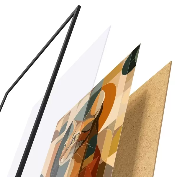 Plakát se skládá z rámu, plexiskla, tištěného obrazu a dřevotřískového podkladu. Díky úchytům na zadní straně lze plakát ihned zavěsit na zeď.