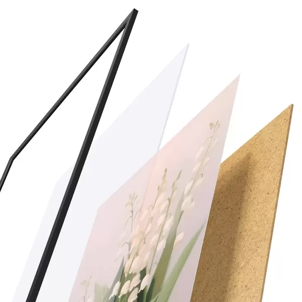 Plakát se skládá z rámu, plexiskla, tištěného obrazu a dřevotřískového podkladu. Díky úchytům na zadní straně lze plakát ihned zavěsit na zeď.