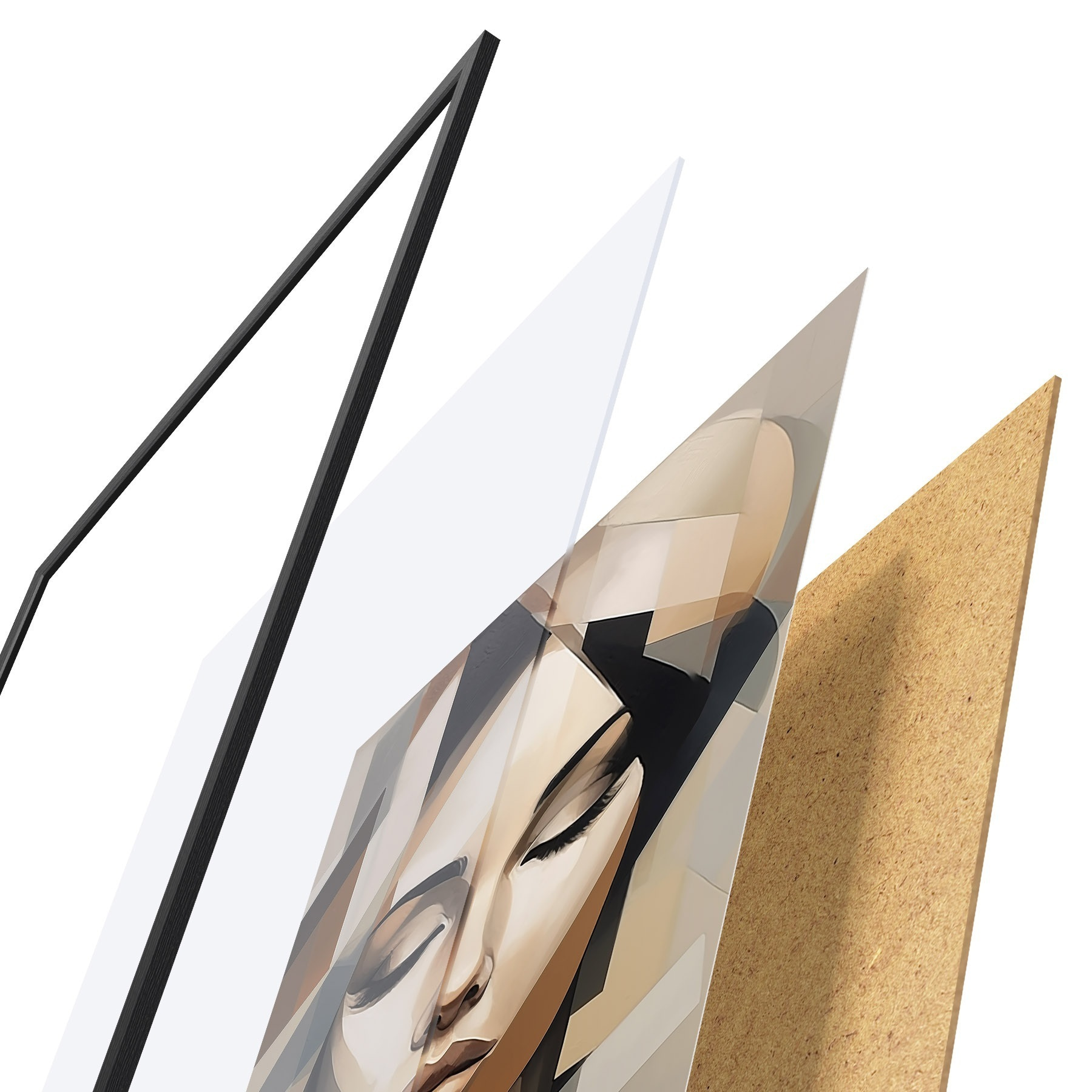 Plakát se skládá z rámu, plexiskla, tištěného obrazu a dřevotřískového podkladu. Díky úchytům na zadní straně lze plakát ihned zavěsit na zeď.