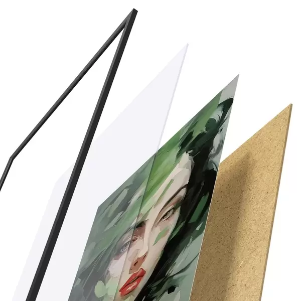 Plakát se skládá z rámu, plexiskla, tištěného obrazu a dřevotřískového podkladu. Díky úchytům na zadní straně lze plakát ihned zavěsit na zeď.