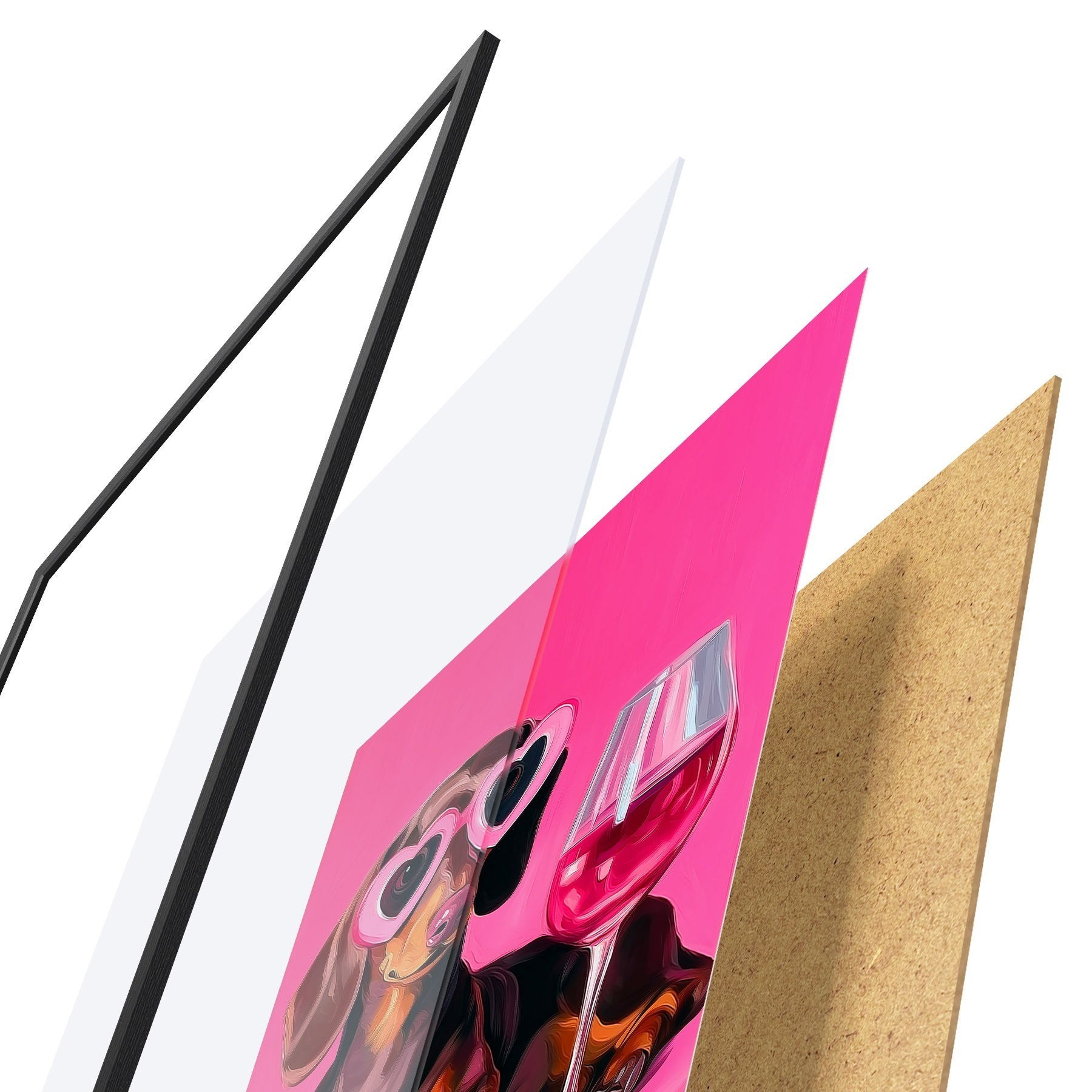 Plakát se skládá z rámu, plexiskla, tištěného obrazu a dřevotřískového podkladu. Díky úchytům na zadní straně lze plakát ihned zavěsit na zeď.