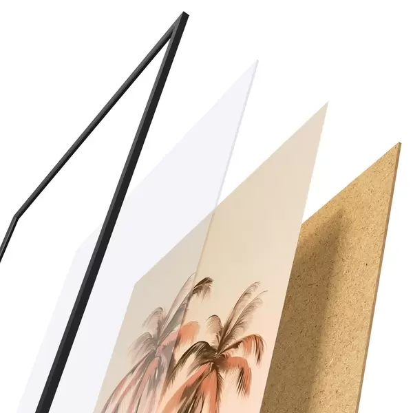 Plakát se skládá z rámu, plexiskla, tištěného obrazu a dřevotřískového podkladu. Díky úchytům na zadní straně lze plakát ihned zavěsit na zeď.