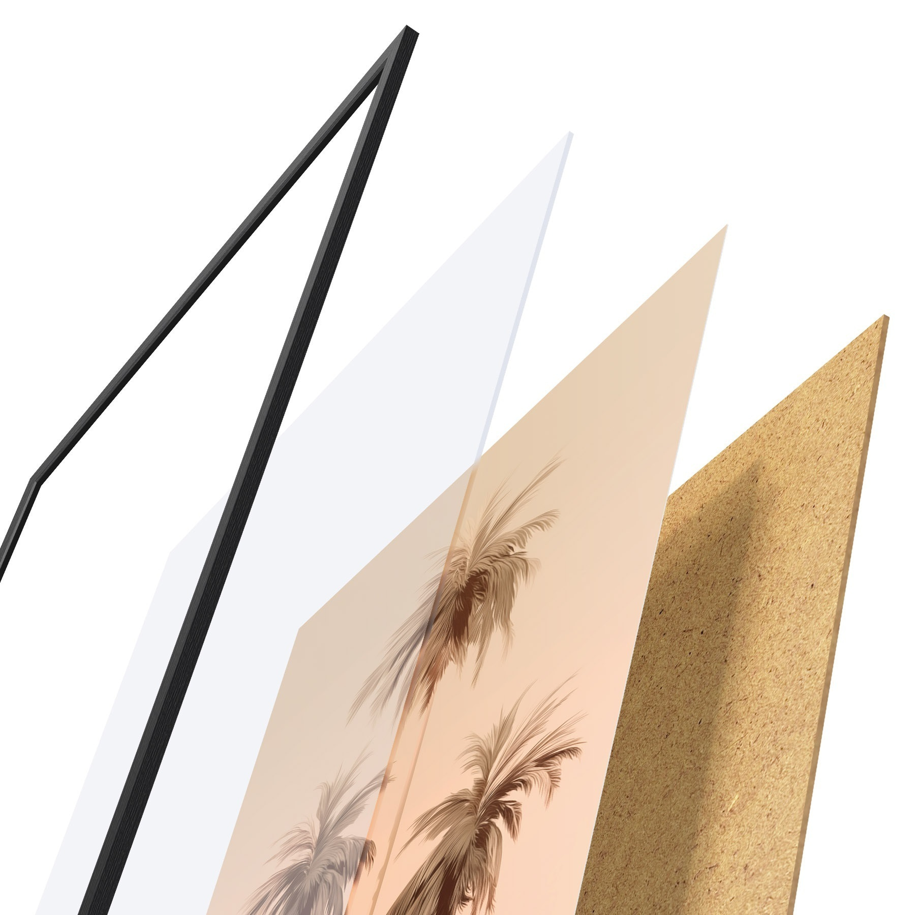 Plakát se skládá z rámu, plexiskla, tištěného obrazu a dřevotřískového podkladu. Díky úchytům na zadní straně lze plakát ihned zavěsit na zeď.
