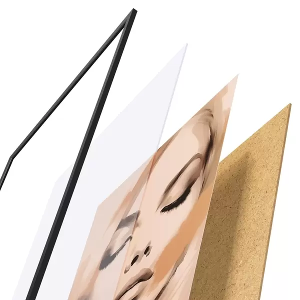 Plakát se skládá z rámu, plexiskla, tištěného obrazu a dřevotřískového podkladu. Díky úchytům na zadní straně lze plakát ihned zavěsit na zeď.