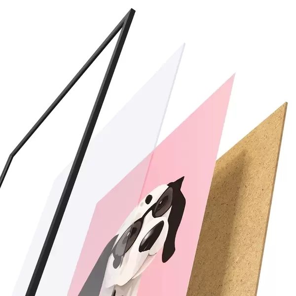 Plakát se skládá z rámu, plexiskla, tištěného obrazu a dřevotřískového podkladu. Díky úchytům na zadní straně lze plakát ihned zavěsit na zeď.