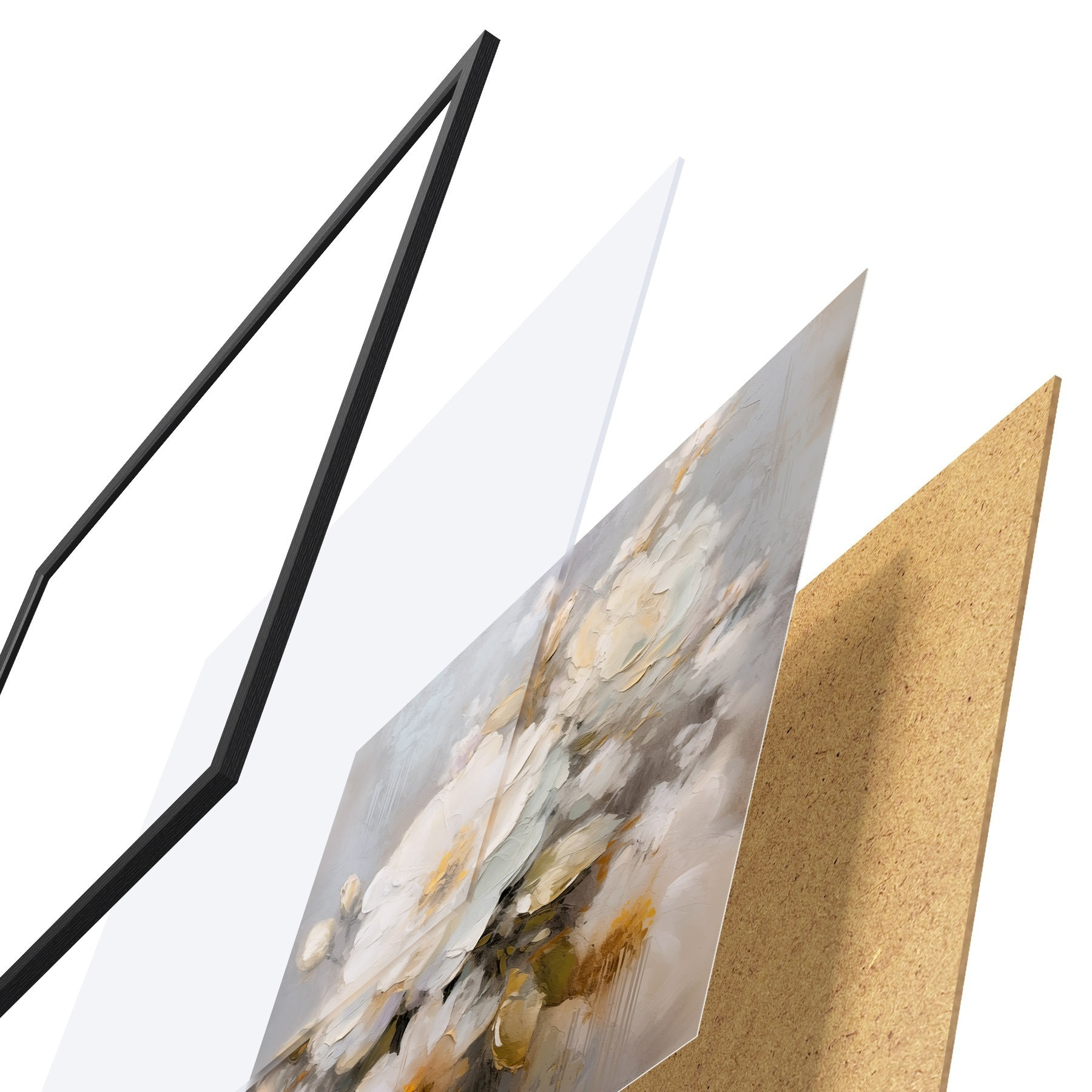 Plakát se skládá z rámu, plexiskla, tištěného obrazu a dřevotřískového podkladu. Díky úchytům na zadní straně lze plakát ihned zavěsit na zeď.