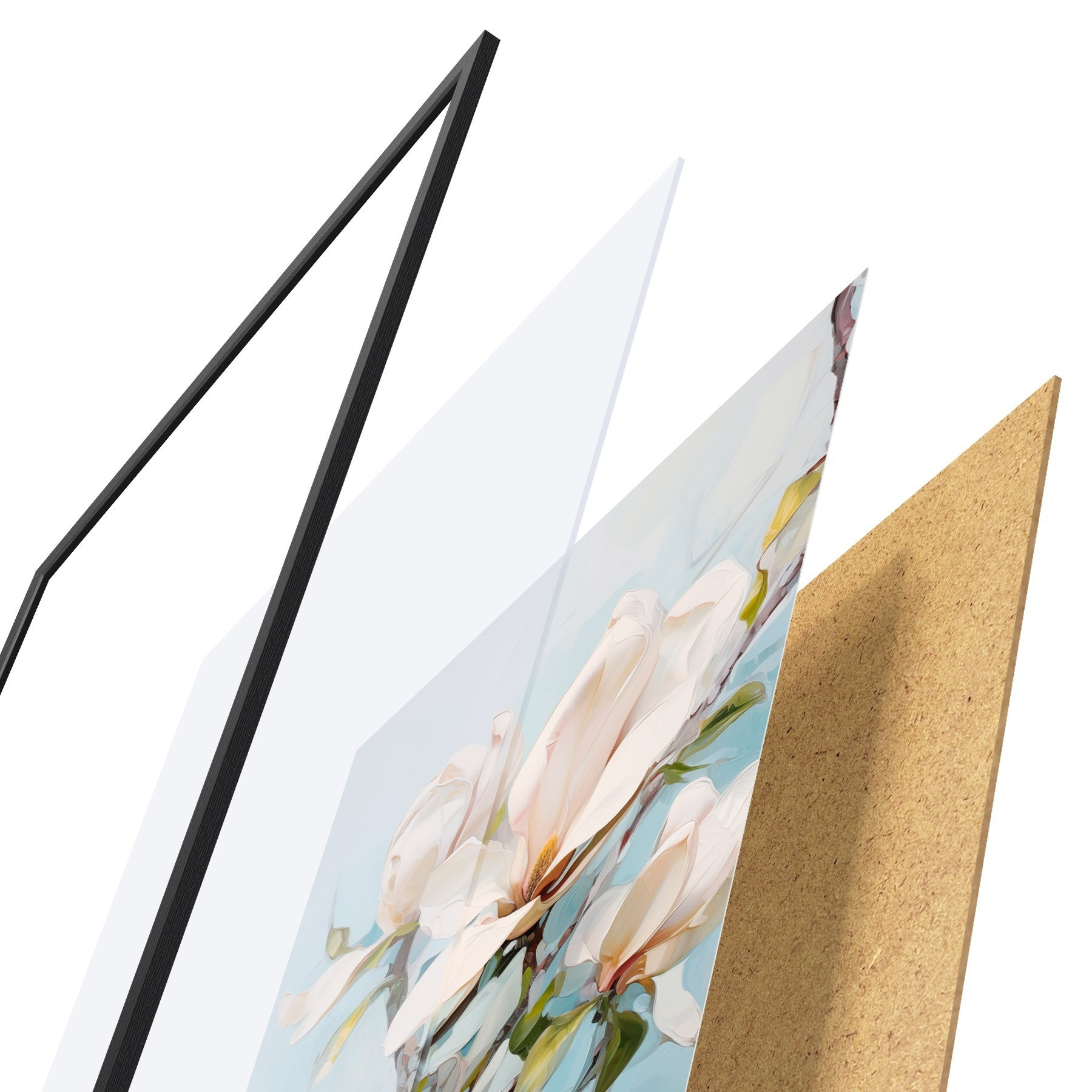 Plakát se skládá z rámu, plexiskla, tištěného obrazu a dřevotřískového podkladu. Díky úchytům na zadní straně lze plakát ihned zavěsit na zeď.