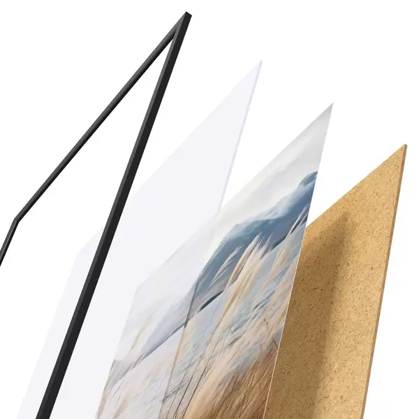 Plakát se skládá z rámu, plexiskla, tištěného obrazu a dřevotřískového podkladu. Díky úchytům na zadní straně lze plakát ihned zavěsit na zeď.