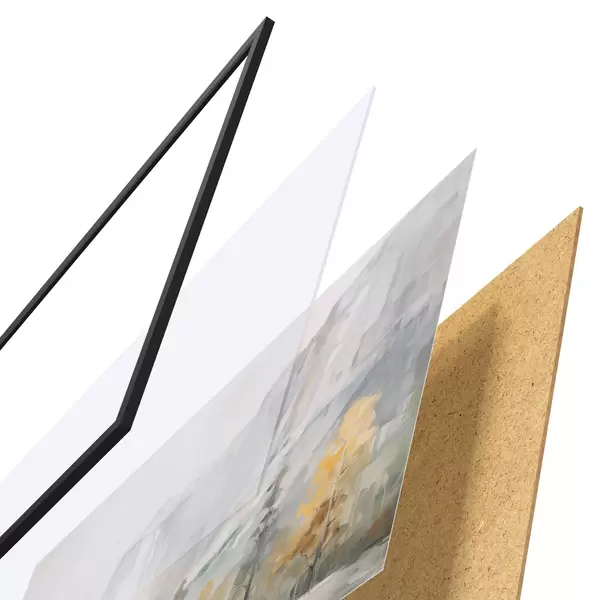 Plakát se skládá z rámu, plexiskla, tištěného obrazu a dřevotřískového podkladu. Díky úchytům na zadní straně lze plakát ihned zavěsit na zeď.