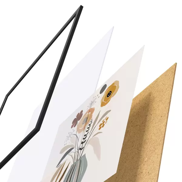 Plakát se skládá z rámu, plexiskla, tištěného obrazu a dřevotřískového podkladu. Díky úchytům na zadní straně lze plakát ihned zavěsit na zeď.