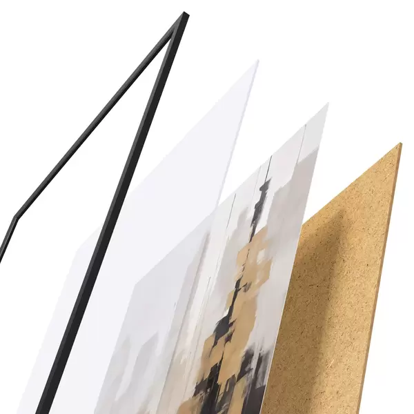 Plakát se skládá z rámu, plexiskla, tištěného obrazu a dřevotřískového podkladu. Díky úchytům na zadní straně lze plakát ihned zavěsit na zeď.
