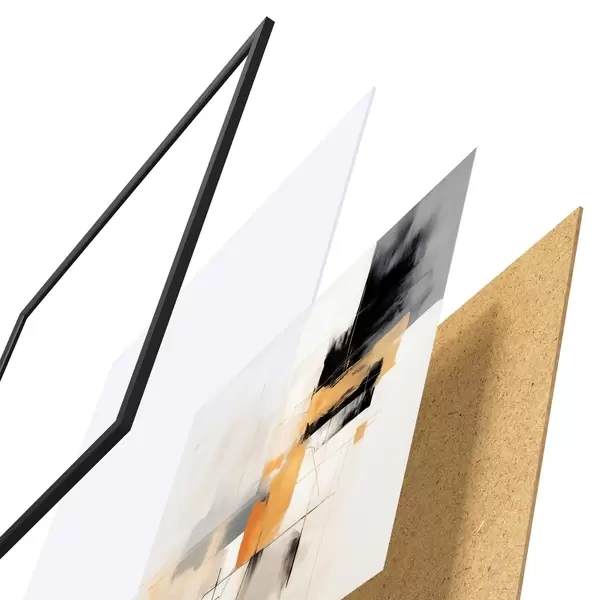 Plakát se skládá z rámu, plexiskla, tištěného obrazu a dřevotřískového podkladu. Díky úchytům na zadní straně lze plakát ihned zavěsit na zeď.