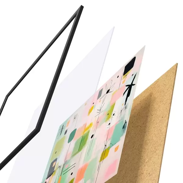 Plakát se skládá z rámu, plexiskla, tištěného obrazu a dřevotřískového podkladu. Díky úchytům na zadní straně lze plakát ihned zavěsit na zeď.